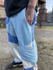 Přáním bylo vytvořit ze starých/vyřazených mikin „kapsáče“ s velkými kapsami. Vznikly tak kalhoty se šesti kapsami, které nyní budou dělat „parádu“ nejen v truhlárně